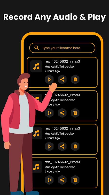 Com este aplicativo mobilemic, você pode salvar e reproduzir seus arquivos gravados, bem como compartilhá-los com seus amigos e familiares. Ele também funciona como um microfone em tempo real para fins auditivos ou até mesmo como um megafone para fazer anúncios em voz alta.