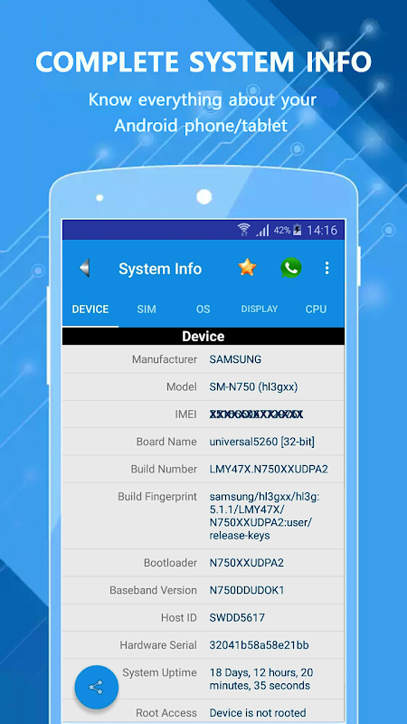 ✓ Dá-lhe informações úteis sobre o seu telefone Android.
