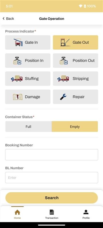 Aplicativo que registra digitalmente as transações de portão de contêineres.