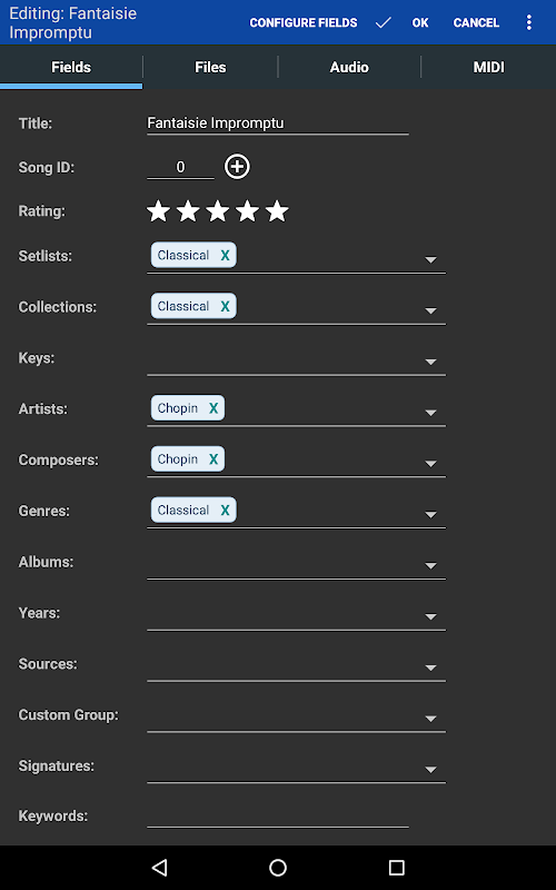 OBSERVAÇÃO: Este aplicativo foi projetado e otimizado para tablets de 7" (polegadas) ou maiores. Esse aplicativo não inclui partituras - você deve adicionar suas próprias partituras. Esse aplicativo não pode reproduzir PDFs, imagens ou perfis de texto / acordes. Ele só pode exibir esses arquivos e reproduzir arquivos de áudio.