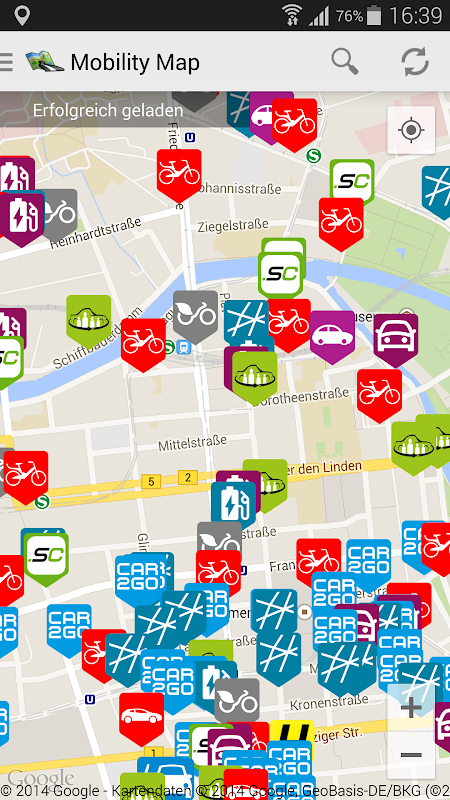 Mobilidade Mapa combina vários prestadores de Carsharing em um único aplicativo.