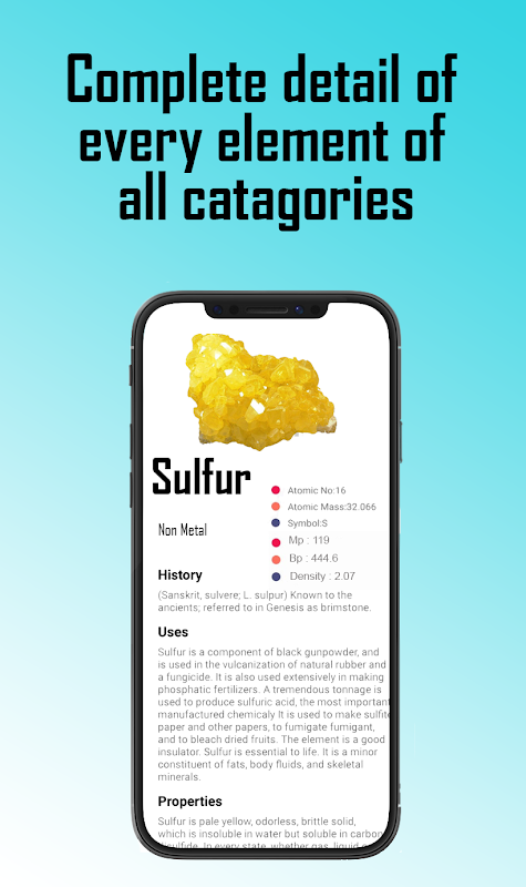 Tabela Periódica moderna é a melhor aplicação para estudantes e professores de química. Neste aplicativo, o usuário pode encontrar facilmente detalhes de qualquer elemento, como categoria de elemento, histórico, origem, usos, propriedades e muito mais. Este aplicativo contém conhecimento completo sobre química e seus elementos