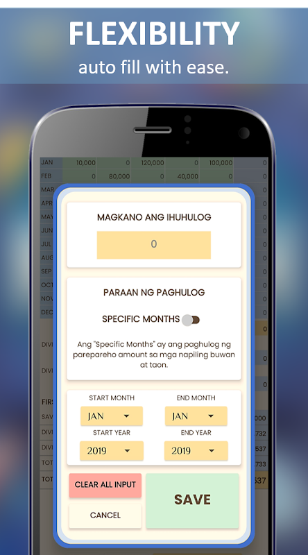 ⚙️ Opções Flexíveis de Depósito: Use o Preenchimento Automático para meses específicos ou preencha todo o prazo de 5 anos com facilidade
