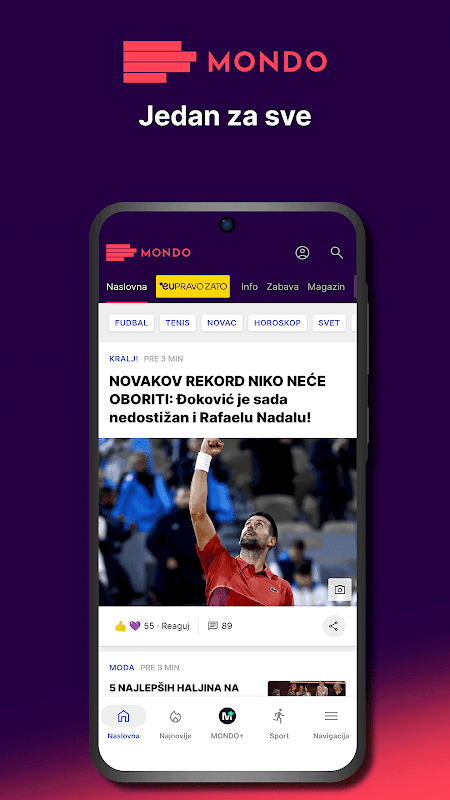 Prati vesti uživo, prilagodi notifikacije, comentários e uso no MONDO sadržaju