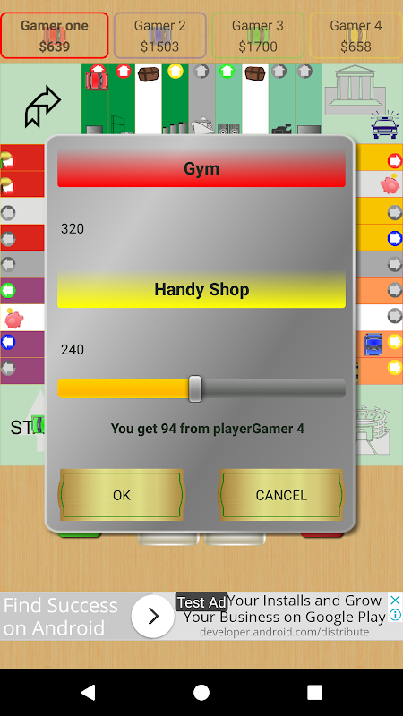 No jogo, você trocará campos com oponentes. Toque no campo interessante, pressione o botão "Fazer oferta" e selecione sua própria propriedade para trocar com um simples toque. Para propriedades que você não gostaria de trocar, use o botão "Proteger contra troca". Troca e proteção são permitidas uma vez por turno.