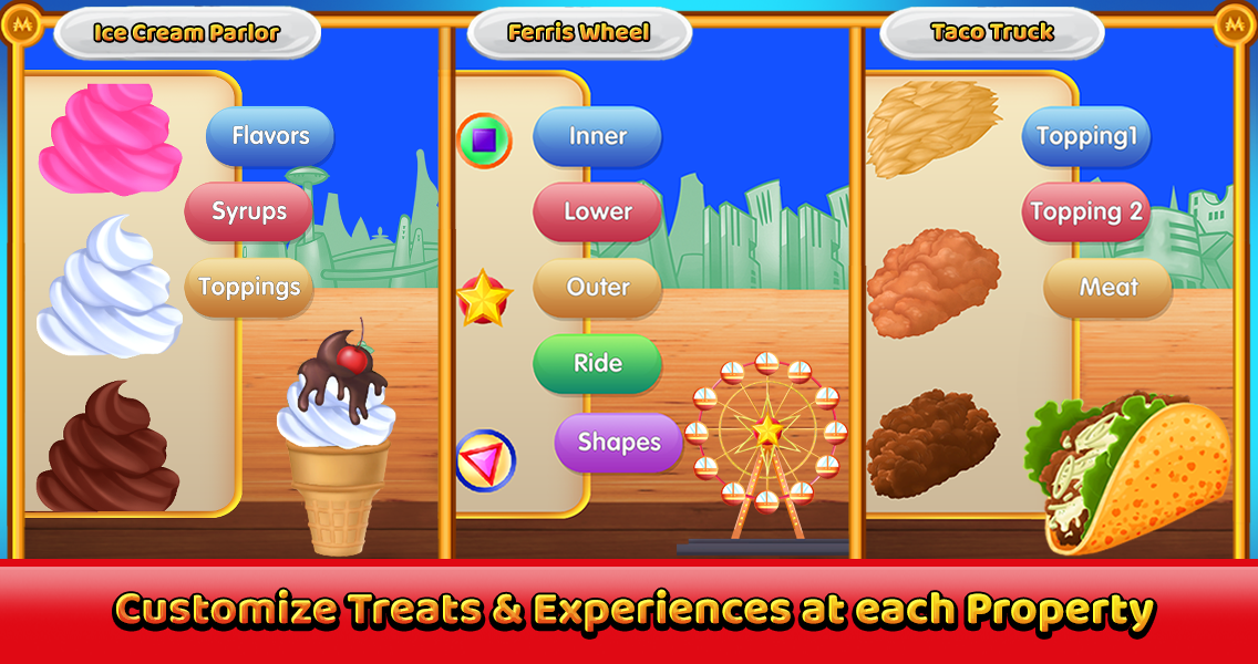 - 16 GORGEOUS ANIMATED LOCATIONS: todos os clássicos para crianças que ganham vida - Toy Shop, Padaria, Aquarium, Museum, Pet Shop, The Zoo, Boardwalk, Ice Cream Parlor, Roller Coaster e muito mais!