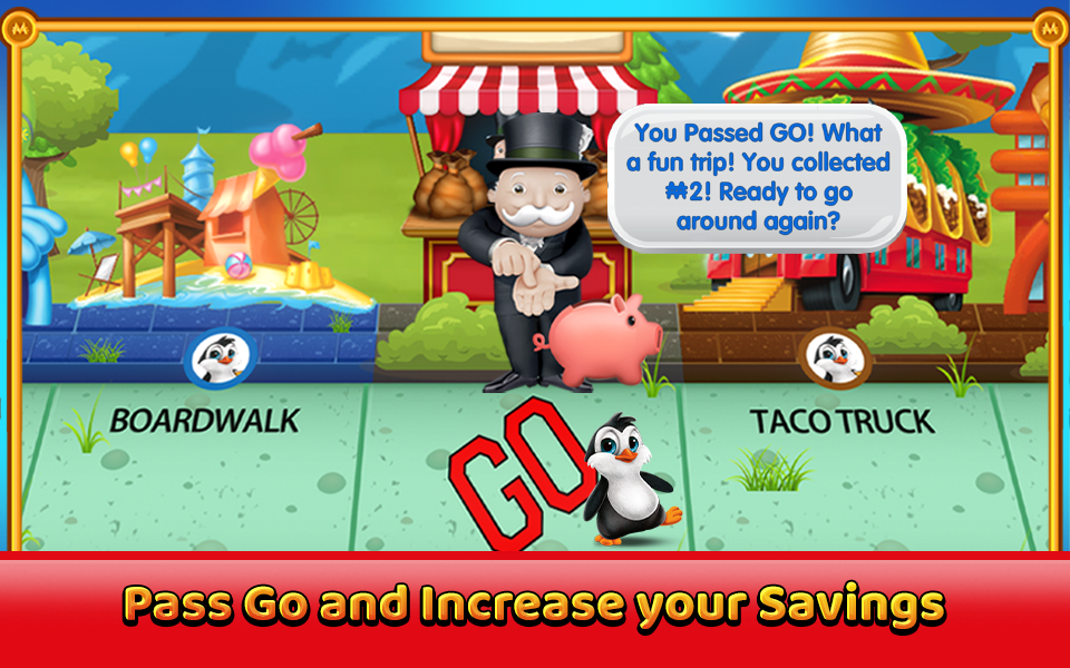 Passe GO e colete duas notas do Monopólio de cada vez, enquanto descobre quanto da cidade ainda está disponível para comprar!