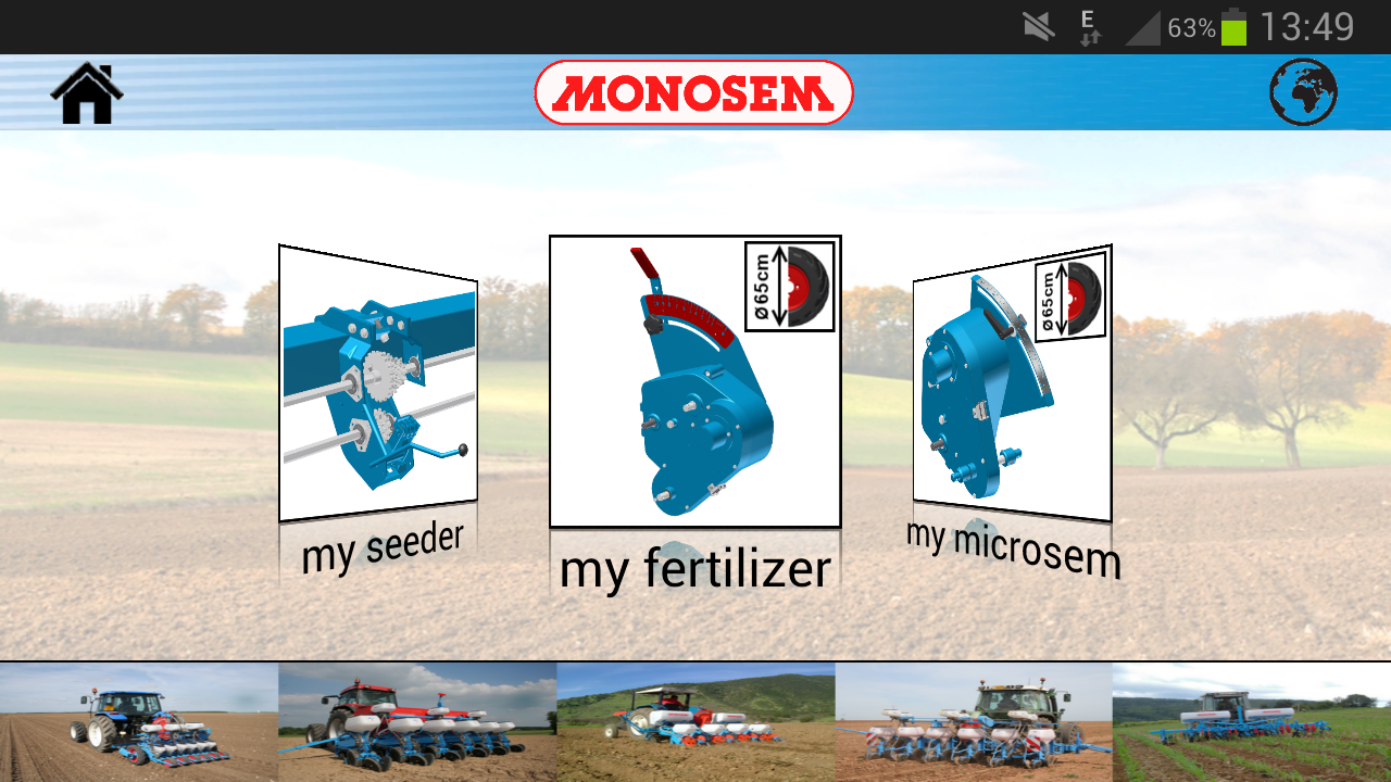 A aplicação de ajuste plantador Monosem permite ajustar facilmente a semente população, fertilizantes e Microsem.