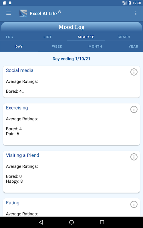 O recurso de análise do aplicativo informará quais estados de espírito ocorreram com essas ações e a classificação média de cada um deles.