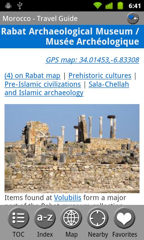 MobileReference Travel Guides provide detailed, practical information about attractions, landmarks, transportation, cultural venues, dining, lodging, history and much more. They are indexed alphabetically and by category, making it easier to access individual articles. Attractions can be viewed on an offline GPS map along with your current location so that you can easily find attractions near you as you explore the city.