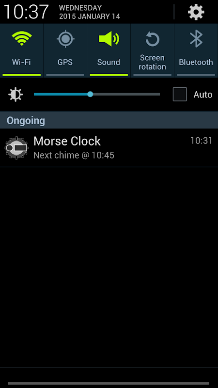 O resultado é este aplicativo que vai jogar o tempo através do sistema de áudio do seu dispositivo. É uma aplicação simples que vai jogar o tempo em código morse no topo de cada hora e, opcionalmente, a cada 15 minutos.