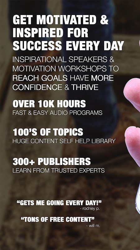 This app includes hundreds of hours of amazing content on motivation and inspiration. We add new stuff weekly. Here is a sample of audio content you will find: