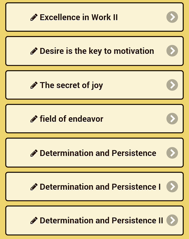 Todas as frases motivacionais são curtos e abrangem uma variedade de temas, desde aqueles sobre o conceito de liderança, para a importância do esforço na vida, a frases motivacionais para os alunos.