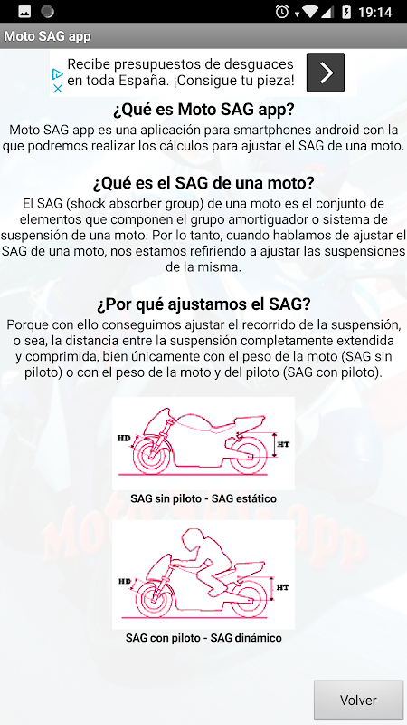 Moto SAG app+ es una aplicación para smartphones android con la que podremos ajustar el SAG de una moto.