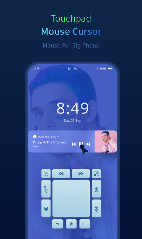 Este aplicativo mostra um pequeno touchpad na parte inferior do telefone para mover o cursor e clicar.