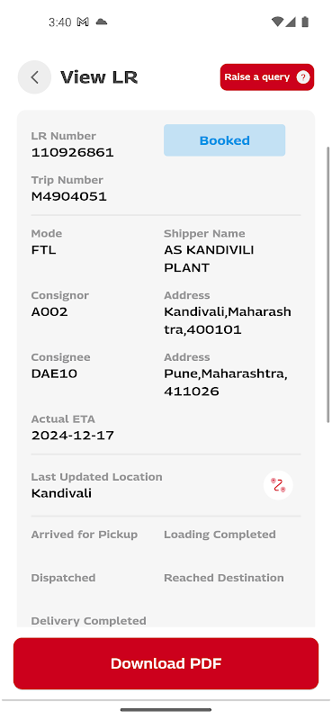 Permite que os motoristas encontrem as coletas atribuídas a eles e digitalizem o conhecimento eletrônico para salvar eletronicamente os documentos exigidos de acordo com os regulamentos do RTO.