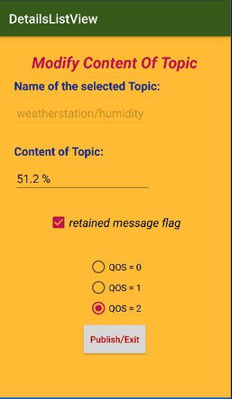 O aplicativo também pode ser usado para publicar dados sobre qualquer tópico do corretor conectado. Com qual "QOS" e se com ou sem "retido" pode ser especificado.