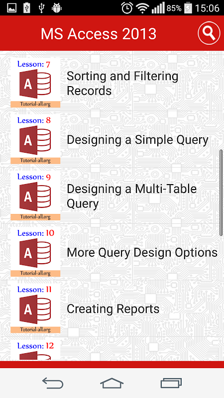 In this application, you can learn some basic and advanced features in MS Access with simple step-by-step tutorials to guide you along.