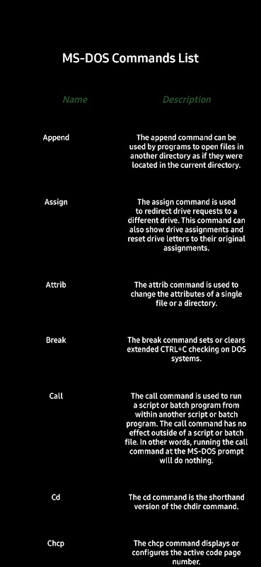 Muitos comandos são iguais em muitos sistemas DOS, mas alguns diferem na sintaxe ou no nome do comando.