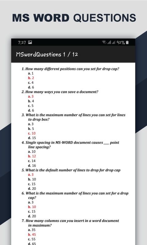 No IQ, ETEA, NTS, PMS, GAT, GRE, ISSB, NAT, GMAT, Exército, Marinha, Força Aérea, preparação de ecat, questionário da NBA, NTS sample paper, Teste de entrada, testes de trabalho, Teste de entrada, Teste GK e CSS do computador A ciência contém isso como mcqs resolvidos neste aplicativo MS Office MCQS e atalhos.
