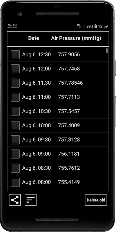 Para coletar dados, o μBarômetro executa um pequeno serviço que salva o valor da pressão a cada hora.