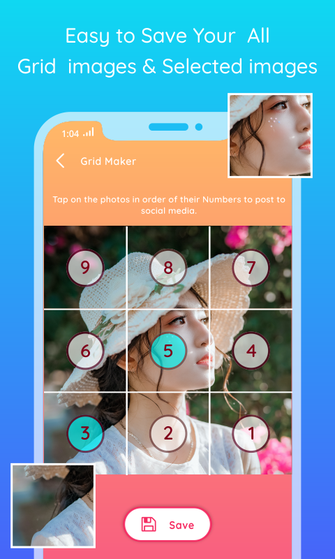Divida suas fotos em várias grades para compartilhar no Social Insta Apps.