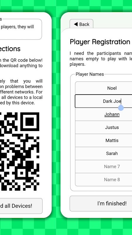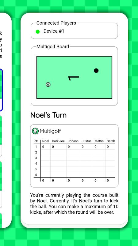 O Multigolfe é um jogo de mesa divertido e exclusivo que não requer preparação, conjuntos ou materiais extras. Ao usar os telefones dos participantes como mesa de jogo, as pessoas são forçadas a se concentrar e são capazes de construir um curso tangível que intuitivamente faz sentido. Os participantes não jogam apenas um jogo de minigolfe em alguns telefones conectados; eles também constroem seus próprios níveis na vida real.