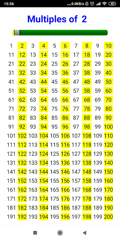 O aplicativo mostra padrões de múltiplos para o número de 2 a 25.