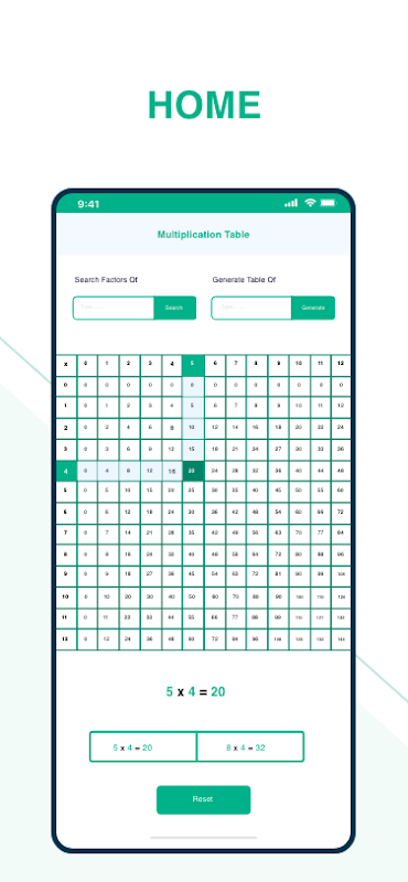Obtenha tabelas de tempos e fatores para números matemáticos offline.