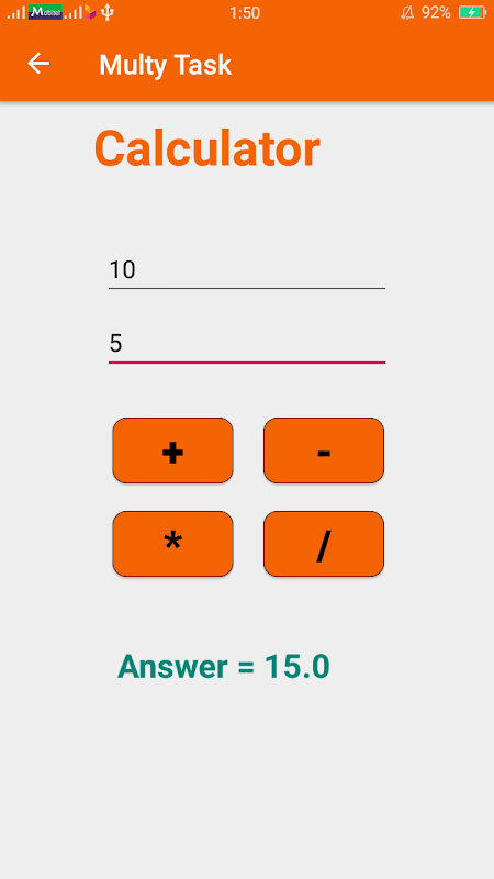 This is a Simple app. You can do 4 things using this app. They are Listening a Song,Calculate the two Numbers, Stop watch and Take a Photo.