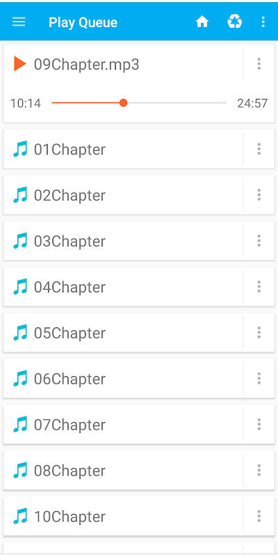 • Fila de reprodução conveniente