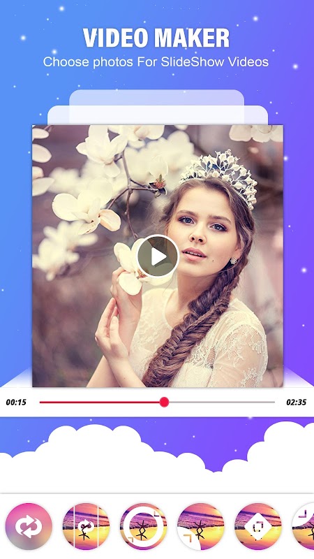 Crie vídeos a partir de fotos e músicas com efeitos maravilhosos agora com o Video Maker. Com ele, você poderá criar vídeos a partir de fotos e adicionar músicas. que será um presente agradável para seus amigos e parentes no aniversário deles ou em outros feriados agradecidos. Ou simplesmente combine imagens para formar um vídeo com música sobre seu estilo de vida e compartilhe esses vídeos interessantes com seus amigos.