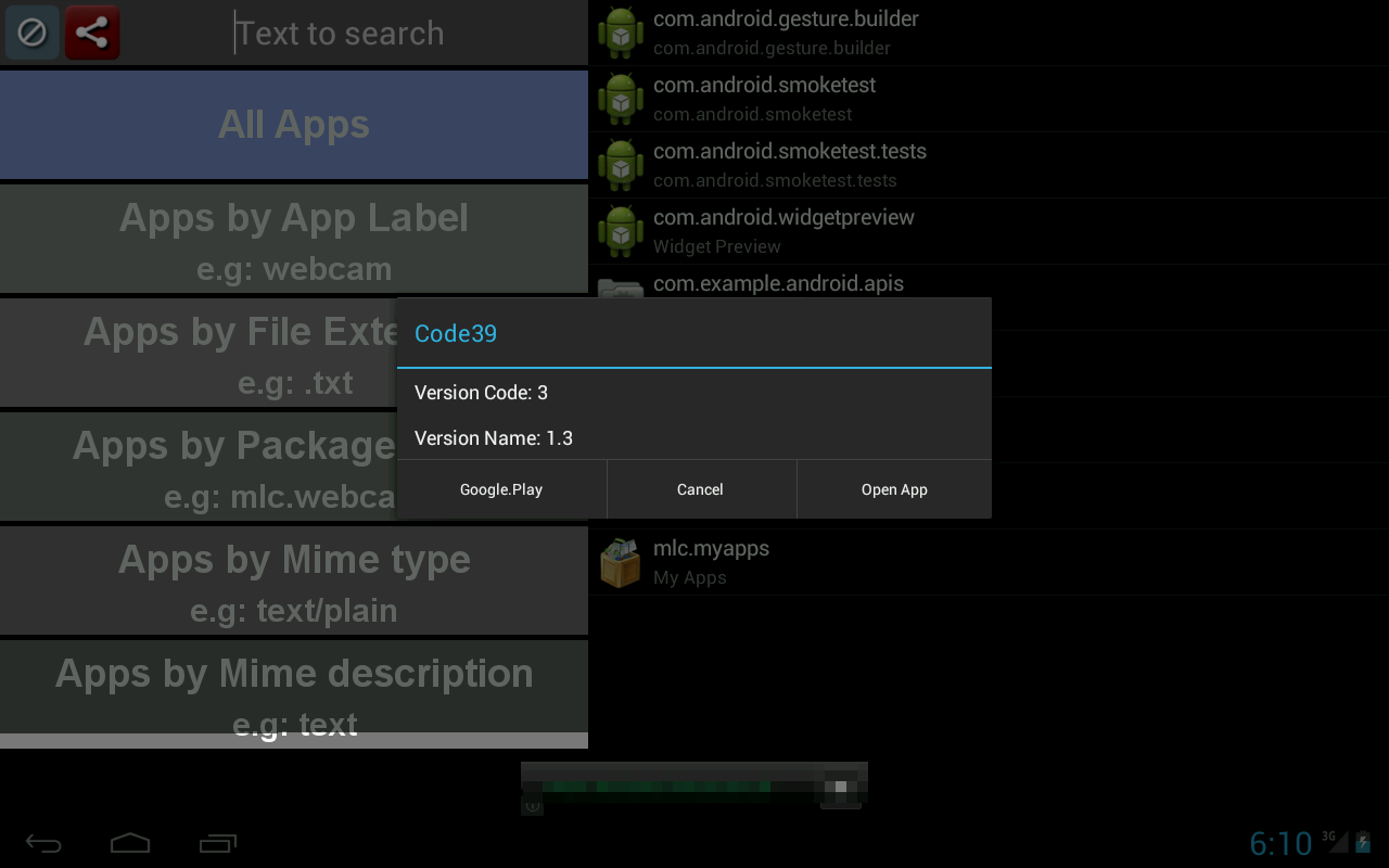 Encontre Aplicativos pelo nome do pacote, apenas algumas letras são suficientes, por exemplo: android