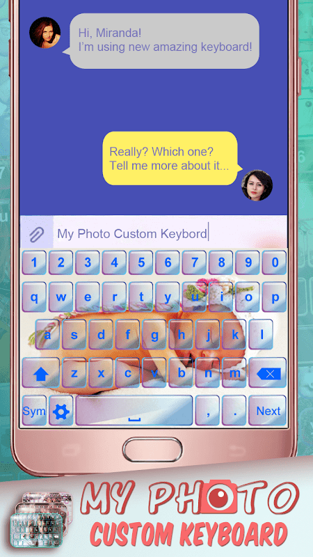 ✸ Have you ever dreamed of having your “personal keyboard”? Are you bored with usual keyboard themes and want something completely new and different? Download our ❃ My Photo Custom Keyboard ❃ and surprise yourself by having one of the most loving keyboard app in the market. Our “free keyboard” application will change the look of your smart phone by setting your own photo as a keyboard theme. Isn't that great???!!! Don't hesitate and get amazing emoticons that can be found here! You will only need a few steps to reach the loveliest keyboard.