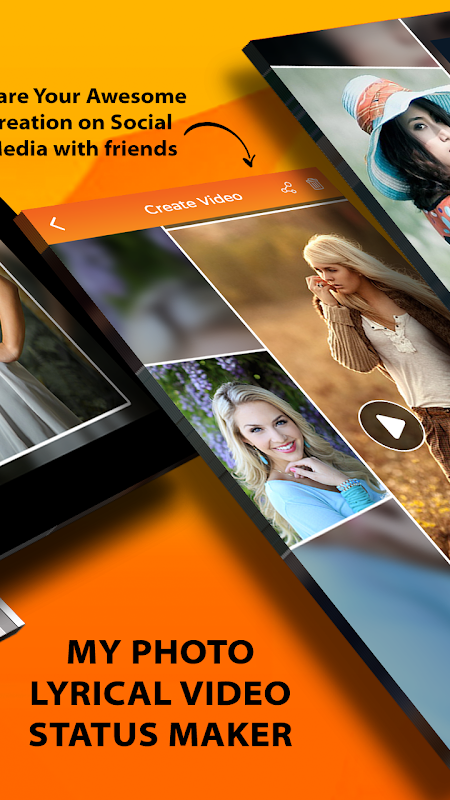 My Photo Lyrical Video Status Maker application with express your mood every day to all to applying all mood songs on videos. change your image into one simple video with our creative application.it have all are simple steps to create video select song, open image gallery, and select image, apply one of your favorite animated lyrical themes into videos, save video and share with one click on social sides