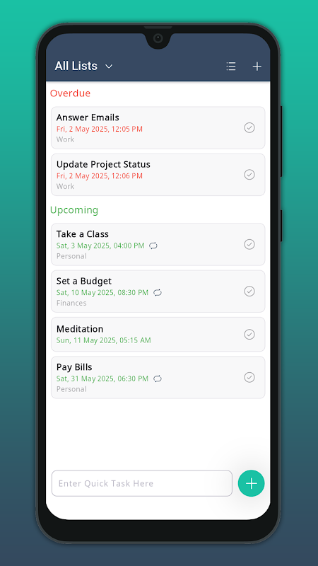 Você pode adicionar tarefas rapidamente, definir prazos e receber lembretes de voz (conversão de texto em fala) que funcionam mesmo quando o aplicativo está em segundo plano ou fechado. Ele foi projetado para ser limpo, rápido e leve – perfeito para usuários que desejam uma experiência sem distrações.