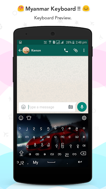 superb eye catching themes from Myanmar Keyboard. You can set your own photo in keyboard and make it