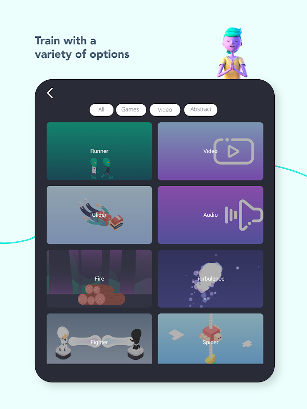 O aplicativo Myndlift funciona de forma independente ou em conjunto com dispositivos Muse (faixa de cabeça com detecção cerebral).