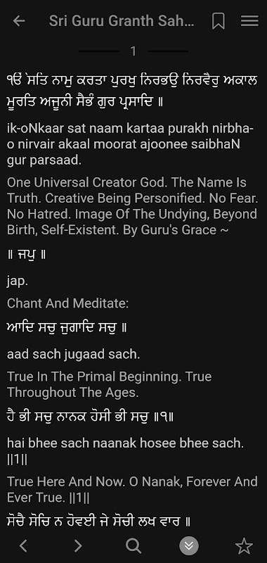 Todos Gurbani vem com traduções em inglês e roteiro romanizado para aqueles que ainda estão aprendendo Gurmukhi. Transformá-los on / off no menu de configurações.