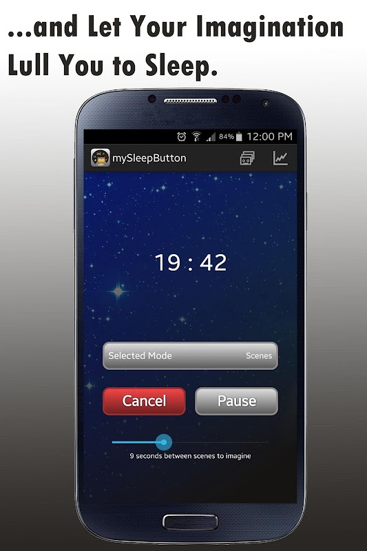 O objetivo do mySleepButton é ajudá-lo a adormecer. E voltar a dormir. É fácil: basta apertar o botão "Coloque-me para dormir" e imaginar a rica variedade de imagens que mySleepButton solicita que você visualize. Esse fluxo onírico de imagens pode distraí-lo de suas preocupações e colocá-lo em um estado propício ao sono. Isso é conhecido como “embaralhamento cognitivo”, porque envolve embaralhar seus pensamentos.