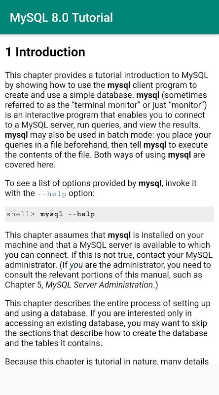 Este é um aplicativo tutorial gratuito e offline do MySQL 8.0 originado de sua documentação oficial.