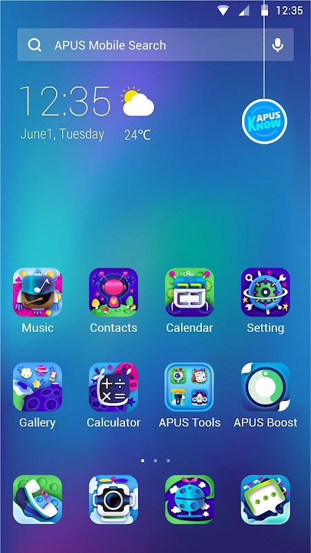 1. Mysterious Color Space - APUS Launcher theme is free, but only compatible with APUS Launcher. If you want to apply it, please install APUS Launcher on your Android phone. Or download new theme and APUS Launcher. When you install APUS Launcher, there are variety of themes in APUS theme & wallpaper shop, such as phonex, lovely unicorn, pink diamond mickey, Red heart, snoopy, luxury, gold, business, black, simple, magic, comic, football, basketball, cricket, Valentine's Day, New Year, Halloween, Christmas, cute cat and dog, butterfly, dawn theme. Install APUS launcher to enjoy more themes.