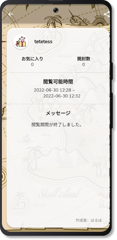 Qualquer usuário pode desafiar a abrir uma caixa criada como uma casa aberta. Também será publicado no ranking do número de favoritos e do número de abertos, então vamos criar uma caixa contendo mensagens e elementos de resolução de quebra-cabeças que você deseja publicar para um número indeterminado de pessoas por tempo limitado.