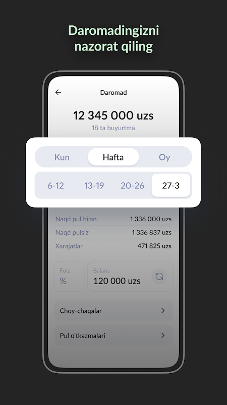 * Ilovadan foydalanish qulayligi - daromad haqida ma'lumot va yangilanishlar bir ilovada jamlangan.