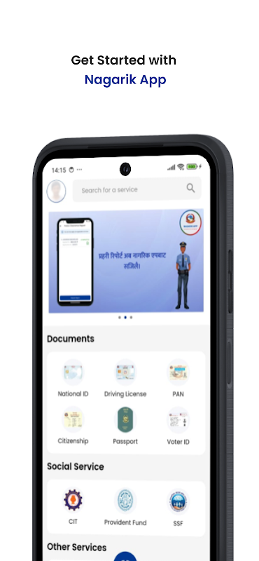 Aplicação Nagarik para cidadão nepalês