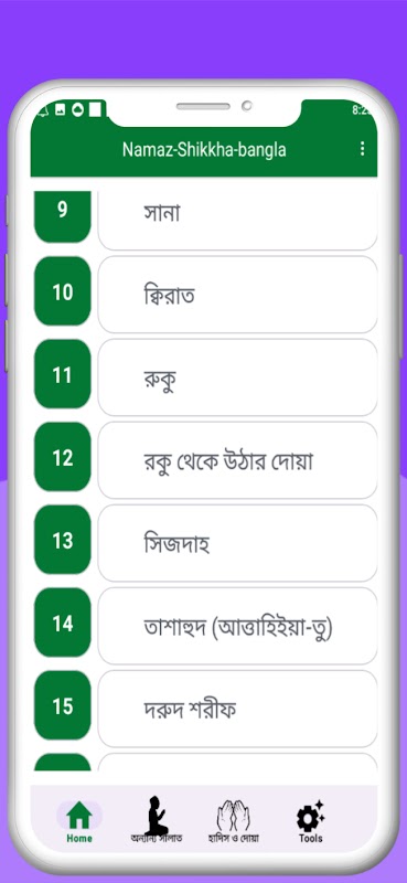 • O aplicativo namaj shikkha é muito útil para aprender diferenças entre orações masculinas e femininas, regras de ablução, dua, surata, orações especiais, istinja, banho, ramadan, zakat, eid, vários tipos de salat etc.
