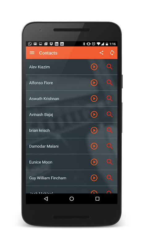 - Contactos Sync - Permite ouvir a pronúncia de nomes de outras pessoas em seus contatos que já têm Namedrop