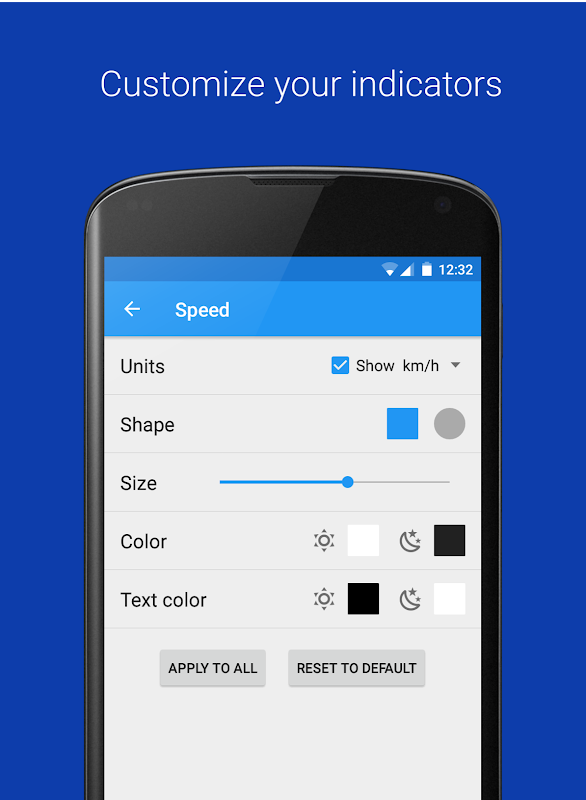 Open NavMeter and enable auto activation. Then open Google Maps and start the navigator: the speedometer will appear; drag it wherever you like with your finger. Tap it quickly if you want to make it disappear for few seconds.