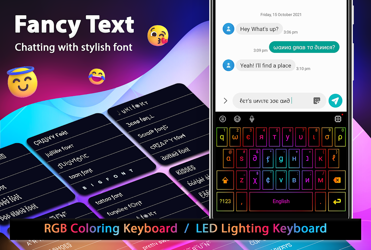 O teclado Neon Led Theme oferece o melhor fundo de teclado, fontes e emojis. O Teclado de Temas Coloridos fornece temas de iluminação LED neon e outros teclados de temas coloridos.