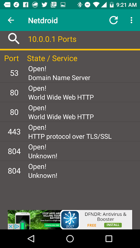 Netoid é um utilitário de rede multi-rápido roscado. Ele executa a varredura da rede, detectando todos os ip do host e endereço MAC. varredura de portas, detecção de portas conhecidas eo serviço executado em portos. Além disso, vários utilitários de rede são fornecidos dentro do aplicativo para testar a conectividade como: mesa de ping, e netstat para exibição de conexões de smartphones. Finalmente, netoid exibe todas ip, rede e configuração de Wi-Fi na rede local.